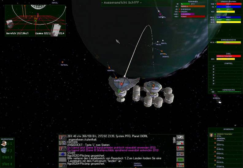 | - | Zusatzausrüstung paßt dein Schiff optimal an die Ziele an. |